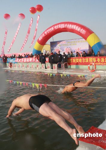 1月5日,由黑龍江省哈爾濱總工會等單位主辦的哈爾濱國際冬泳邀請賽在哈爾濱舉行。來自杭州、蘭州、大連等35個城市42個代表隊以及俄羅斯伊爾庫斯克等地區(qū)的400名男女冬泳運(yùn)動員參加了此次冬泳邀請賽。