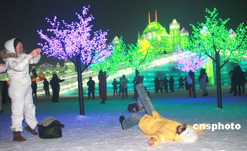 2009年1月5日,由國家旅游局、黑龍江省人民政府、哈爾濱市人民政府主辦的第25屆中國·哈爾濱國際冰雪節(jié)在哈爾濱舉行開幕式。本屆冰雪節(jié)以“激情大冬會、快樂冰雪游”為主題,包括冰雪藝術、冰雪體育、冰雪文化、冰雪經貿、冰雪旅游等百余項相關活動。中新社發(fā) 王忠言 攝