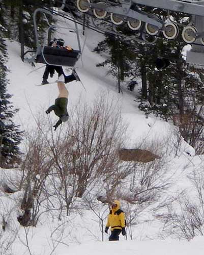 1月6日,據(jù)英國(guó)媒體報(bào)道,美國(guó)科羅拉多一處滑雪場(chǎng)日前上演了一出尷尬場(chǎng)面。一名男子在上纜車時(shí),因座椅故障,整個(gè)人頭朝下翻轉(zhuǎn)了下來(lái),所幸他的雪橇將他卡在纜車上,沒有掉下來(lái)。但是令人尷尬的是,他的褲子被扯下來(lái),整個(gè)下半身暴露在冰雪寒風(fēng)中,直到15分鐘后才有工作人員將他救下來(lái)。