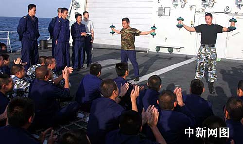 中新網(wǎng)“?凇迸1月9日電,中國海軍護航編隊“?凇碧枌楎(qū)逐艦舉行甲板運動會,以豐富官兵在護航期間的文體生活,甲板運動會共設(shè)六個比賽項目,分三個下午舉行,今天首場舉行啞鈴、臂力棒項目的比賽。