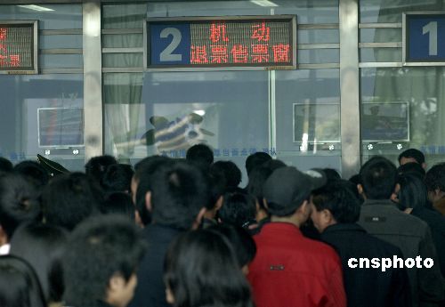 福州火車(chē)站退票窗口和售票窗口一樣人頭攢動(dòng)。中新社發(fā) 王東明 攝