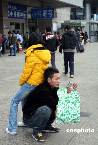 2009年1月11日,為期40天的中國2009年春運(yùn)正式開始,春運(yùn)客流壓力依然很大,客流的剛性需求特征十分明顯,預(yù)計(jì)全國鐵路旅客發(fā)送量將達(dá)1.88億人,比去年同期增長8%,日均470萬人。返鄉(xiāng)流中旅客們表情各異。
