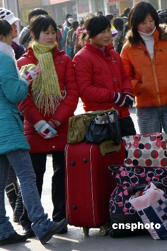 幾位“打工妹”結(jié)伴在鄭州火車站準(zhǔn)備一起返鄉(xiāng)過年,但“一票難求”愁壞了她們,顯得很沮喪。