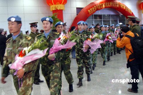 圖:中國首批赴達爾富爾維和部隊平安回國(2)