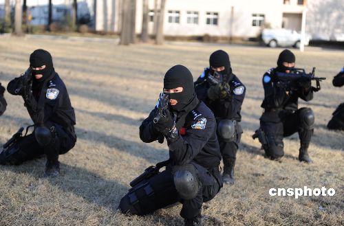 維和防暴隊(duì)員進(jìn)行小隊(duì)?wèi)?zhàn)術(shù)訓(xùn)練。中新社發(fā) 由永懷 攝