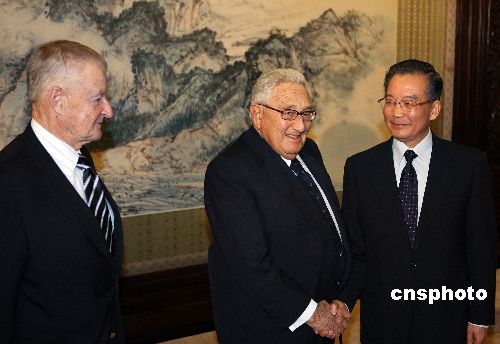 1月13日下午,中國(guó)總理溫家寶在北京中南海紫光閣會(huì)見(jiàn)專程來(lái)華參加中美建交三十周年紀(jì)念活動(dòng)的美國(guó)前國(guó)務(wù)卿基辛格、前總統(tǒng)國(guó)家安全事務(wù)助理布熱津斯基等美國(guó)客人。