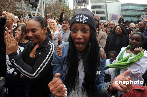 圖:非裔婦女為奧巴馬就職欣喜若狂