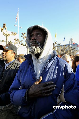 圖為舊金山非裔分享奧巴馬就職典禮的喜悅。中新社發(fā) 陳鋼 攝