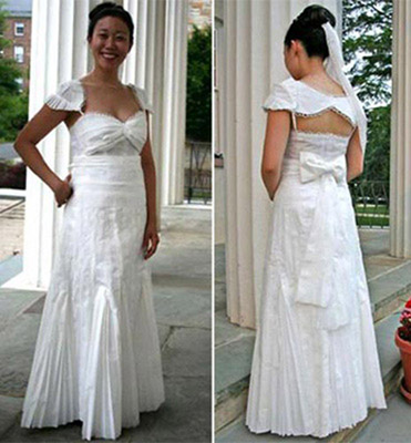 2007年12月19日美國肯塔基州的新娘珍妮佛·卡農(nóng)與新郎多伊·尼科爾斯卻在紐約時代廣場的一個公共廁所內(nèi)舉行了婚禮。更讓所有人目瞪口呆的是,當天珍妮佛身上所穿的婚紗,竟全部是用衛(wèi)生紙制作而成!