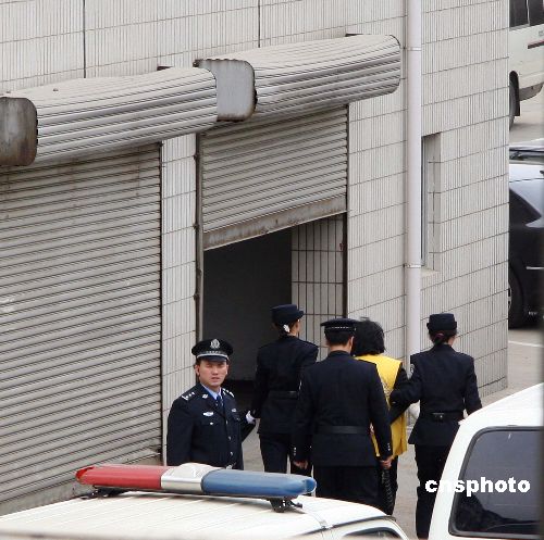 圖為三鹿集團(tuán)原董事長田文華(黃衣者)被押送進(jìn)入法院。中新社發(fā) 翟羽佳 攝