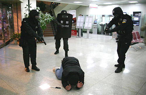 北京警方開展銀行系統(tǒng)防搶劫演練