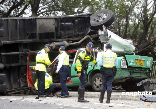 圖:香港落馬洲發(fā)生嚴(yán)重車禍 六人死亡(2)