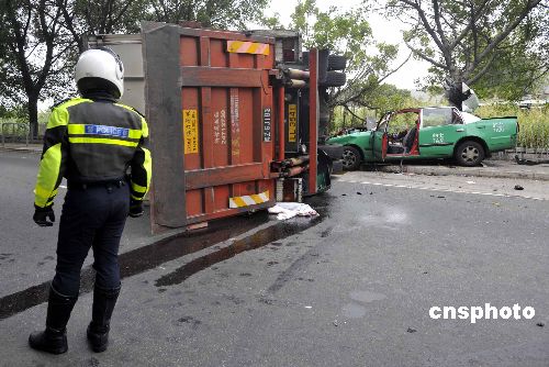 圖:香港落馬洲發(fā)生嚴重車禍 六人死亡(3)