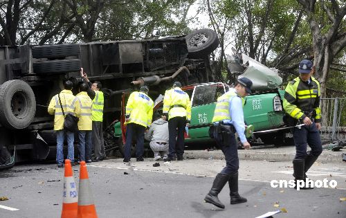 圖:香港落馬洲發(fā)生嚴重車禍 六人死亡(4)