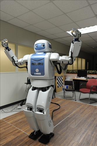 會跳舞的機器人:韓國科學技術研究院機器人研究小組劉凡材博士開發(fā)的機器人“MARU”,可同時轉(zhuǎn)動上下肢,隨著音樂節(jié)奏跳舞。