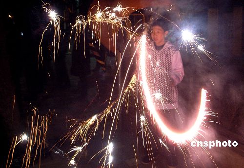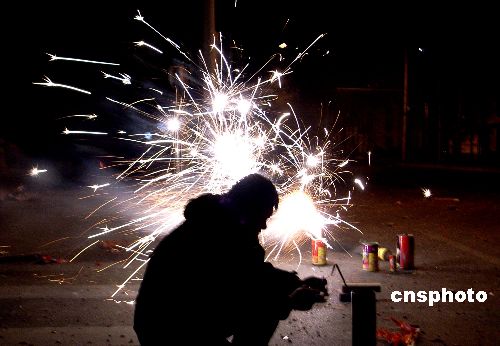 一月二十六日零時(shí),北京民眾紛紛走出家門燃放煙花爆竹慶賀新年。中新社發(fā) 廖攀 攝