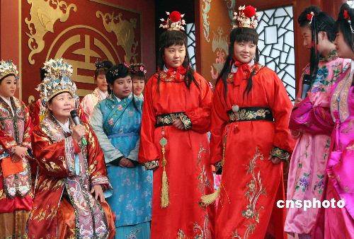 1月27日 (大年初二),北京大觀園十四屆紅樓廟會(huì)吸引眾多假日游客,本屆廟會(huì)以弘揚(yáng)中華傳統(tǒng)文化為宗旨,以展現(xiàn)紅樓文化為主題,呈現(xiàn)出改革開(kāi)放30年來(lái)新北京、新宣武的精神風(fēng)貌。廟會(huì)主要活動(dòng)有“元妃省親”、“寶黛成婚”“賈母賀壽”、紅樓文化展覽--木版年畫(huà)展、紅樓夢(mèng)人物火花展以及紅樓美食展示區(qū)等。圖為在紅樓廟會(huì)上由一對(duì)雙胞胎扮演的“賈寶玉”富有戲劇色彩。中新社發(fā) 錢(qián)興強(qiáng) 攝