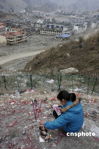 2009年1月25日(大年三十),地震遇難者親屬來到北川縣城遺址,祭奠在地震中遇難的親人。24日起,北川縣老縣城對遇難者家屬開放兩天。