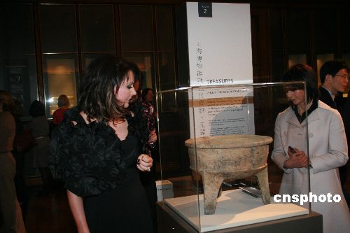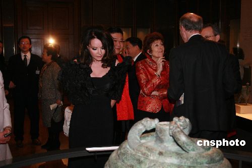 圖為布萊曼(左)在開幕式后參觀在大英博物館舉辦的“中國(guó)青銅玉器展”。