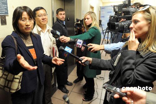 中國駐洛杉磯副總領(lǐng)事黃曉。ㄗ笠唬┰趦(nèi)華達大學(xué)醫(yī)療中心接受美國主流媒體記者采訪。中新社發(fā) 張煒 攝