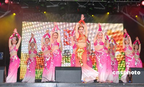 當(dāng)?shù)貢r(shí)間2月1日,英國(guó)倫敦盛大的中國(guó)新年慶典在特拉法加廣場(chǎng)開(kāi)幕,中國(guó)國(guó)務(wù)院僑辦組織的“文化中國(guó)·四海同春”藝術(shù)家赴現(xiàn)場(chǎng)演出助陣。圖為昆明市民族歌舞劇院正在演出具有少數(shù)民族風(fēng)情的歌舞節(jié)目。