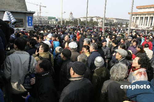 正陽門原計劃三日十二時至十六時免費開放,但早九點已有兩、三千市民在門口繞圈排起了長龍。人群中,有年過八旬的老太太,有從京郊乘車近兩小時趕來的市民。據一位市民透露,還有人凌晨三點即來排隊,不但可拿到中國人民解放軍入城式六十周年紀念券、捷足先登城樓看展覽,更能穩(wěn)得當日僅發(fā)放一百份的珍貴紀念品。