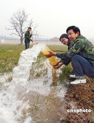 河南省溫縣南張羌鎮(zhèn)大學(xué)生“村官”幫扶馬莊村村民澆灌小麥。春節(jié)后上班以來,該縣250余名大學(xué)生“村官”組成青年抗旱突擊隊,幫扶全縣困難群眾及未返鄉(xiāng)人員家屬抗旱澆麥,解決他們的后顧之憂。
