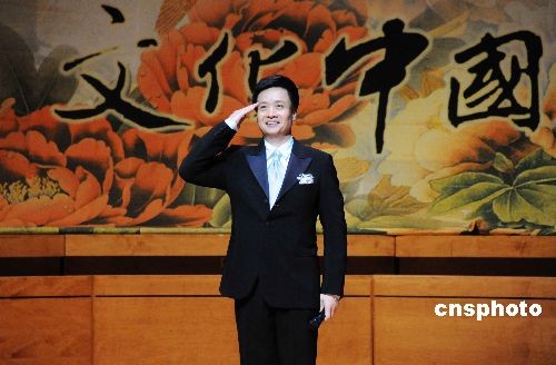圖為閻維文在演唱《一二三四歌》時(shí)向觀眾行禮。中新社發(fā) 邱江波 攝