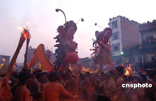 2月5日,廣西南寧賓陽縣舉行當(dāng)?shù)貍鹘y(tǒng)的“炮龍節(jié)”,整個縣城一百多條巨龍狂舞,震耳欲聾的鞭炮響徹一晚,四十多萬人參與狂歡。被譽為“中國狂歡節(jié)”的賓陽縣炮龍節(jié)是中國國家級非物質(zhì)文化遺產(chǎn),節(jié)日當(dāng)天主要街道上群龍勁舞,鞭炮齊鳴。每條炮龍長達三四十米,被視為新年神物,以“龍牌”、鑼鼓、八音開路,花籃火把相隨,眾大漢赤膊上陣,沿街游舞。臨街的商家住戶和游客把一串串鞭炮丟往龍身上炸龍,以祈求來年風(fēng)調(diào)雨順,富貴平安。
