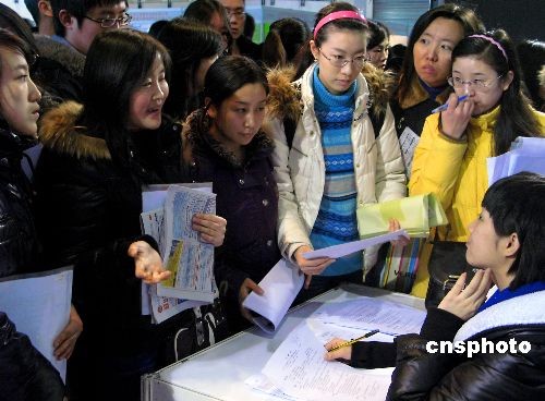 圖為大學生在一家專賣店招聘臺前應聘店長、模特、導購員等職業(yè)。中新社發(fā) 鄒憲 攝