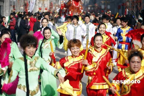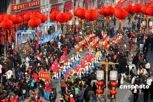 2月9日上午,來(lái)自北京、河北、山東等3個(gè)省市的12支花會(huì)隊(duì),在前門(mén)大街舉行“傳統(tǒng)民間花會(huì)踩街”活動(dòng),喜迎正月十五元宵節(jié)的到來(lái)。踩街是一種中國(guó)傳統(tǒng)民間民俗藝術(shù)表演形式,類似國(guó)外的花車(chē)游行,表演隊(duì)伍邊行進(jìn)邊表演,游客沿途觀看;〞(huì)隊(duì)從正陽(yáng)門(mén)箭樓南側(cè)和前門(mén)五牌樓出發(fā),16只南獅和北獅為大隊(duì)人馬開(kāi)道,隨后中幡、旱船、二魁摔跤、地秧歌、鼓子秧歌等將依次向珠市口行進(jìn)。