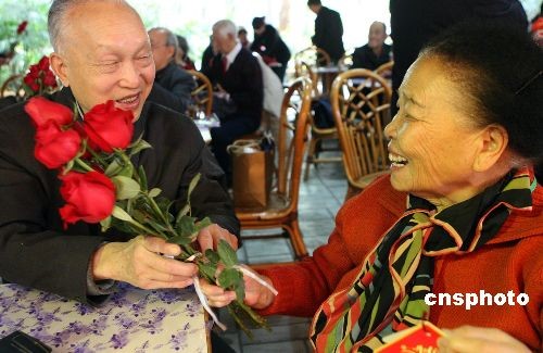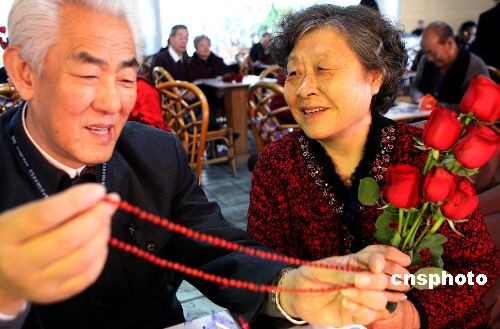 2月9日,中國傳統(tǒng)元宵佳節(jié)到來之際,北京植物園上演的“浪漫玫瑰文化周”吸引99對金婚夫婦共度元宵佳節(jié),特邀而來的金婚夫婦(結(jié)婚滿50年)手捧著政府當(dāng)年頒發(fā)的不同版本的結(jié)婚證,相互獻(xiàn)上象征愛情的紅玫瑰、相思紅豆,交換金婚禮物,重溫愛的誓言,在鮮花前回憶浪漫的美好時光,許多長者回憶起風(fēng)風(fēng)雨雨幾十年的時光,激動得熱淚盈眶。中新社發(fā) 錢興強 攝