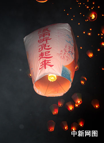 1月9日晚,由臺灣“交通部”觀光局和臺北縣政府主辦的“天燈讓兩岸亮起來”慶元宵活動在臺灣天燈之鄉(xiāng)平溪舉行。記者 陳立宇 攝