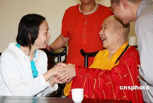 2月9日,著名演藝明星宋丹丹前往三亞度假過元宵節(jié)。一身休閑穿著打扮的宋丹丹游覽三亞南山景區(qū),瞻仰南海觀音,感受三亞美麗風光,歡度休閑假期。圖為宋丹丹在游覽三亞南山景區(qū)時拜訪南山寺方丈、九旬高僧新成大和尚。中新社發(fā) 陳文武 攝