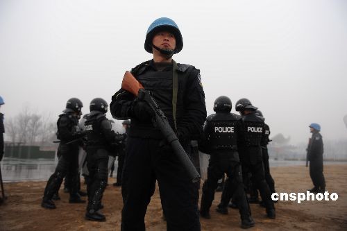 圖:中國赴海地維和警察防暴隊冒雨訓(xùn)練(5)