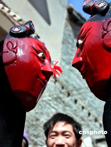2月12日是農(nóng)歷正月十八,貴州省安順市西秀區(qū)吉昌屯舉辦隆重的“抬汪公”活動,是屯堡村寨每年最隆重的活動之一,四鄉(xiāng)八寨的村民都會來到汪公祠堂燒香拜祖神,祭祀汪公!疤艄笔峭捅と俗孑厒鞒械闹匾⒌。每年正月十六凌晨,屯堡人就把紅面長須身穿官袍的“汪公”他老人家從平日香火侍奉的“汪公廟”里請出,端放在一個紅錦緞扎成的轎子里,由全屯最有威望的老人引路,轎前有儀仗隊鳴鑼開道,轎后跟隨高妝彩車、蓮船、地戲隊,前呼后擁,游鄉(xiāng)串寨,熱鬧非凡。中新社發(fā) 彭年 攝