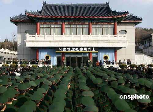 2月14日上午,張建勇烈士遺體告別儀式在北京八寶山殯儀館舉行,北京市相關(guān)單位負(fù)責(zé)人以及烈士親屬、戰(zhàn)友、生前好友600余人參加。2月10日凌晨1時40分,北京市公安局消防局朝陽支隊(duì)紅廟中隊(duì)指導(dǎo)員張建勇,在撲救央視新址附屬文化中心在建工地重大火災(zāi)中壯烈犧牲,離他30歲生日僅有16天。2月12日,中國公安部批準(zhǔn)張建勇為革命烈士。中新社發(fā) 富田 攝