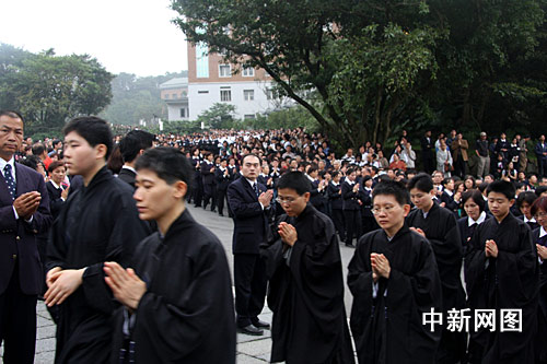 2月15日,臺灣法鼓山創(chuàng)辦人圣嚴(yán)法師追思法會暨植存在法鼓山舉行。圖為數(shù)以萬計的信眾從臺灣各地前來法鼓山,送圣嚴(yán)法師最后一程。中新社記者 陳立宇攝