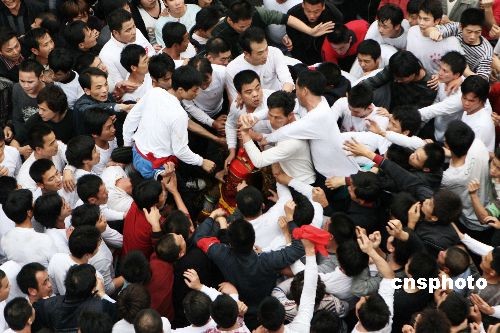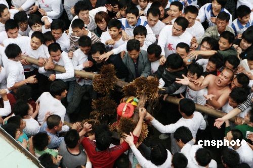 2月16日,農(nóng)歷正月二十二,廣東汕頭市鹽灶村舉行獨(dú)特的傳統(tǒng)“搶財(cái)神”活動(dòng);顒(dòng)中,一些被挑選出來的村民將廟里的神像抬出來游行,其他村民則競(jìng)相涌上前觸摸甚至奪取、拖行神像。按照村里的老話:“老爺公喜歡拖,越拖越興旺。”這一獨(dú)特盛會(huì)吸引了數(shù)千人前來助威觀看,比過春節(jié)還熱鬧。