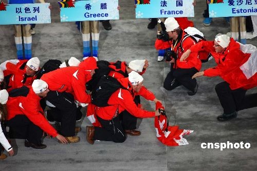 圖為在開幕式上瑞典代表團(tuán)以獨(dú)特的方式入場。中新社發(fā) 富田 攝