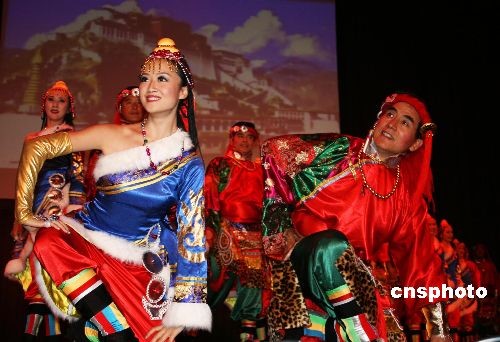 為歌頌今日西藏的變化,中國(guó)民族舞蹈演員與當(dāng)?shù)孛绹?guó)南加州華人華僑一起進(jìn)行了多次西藏民族舞蹈演出,受到當(dāng)?shù)厝A人華僑熱烈歡迎。