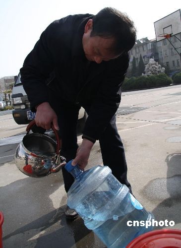 2月21日,江蘇省鹽城市各主干道上,消防車輛正為市民輸送安全用水,確保鹽城市民能夠安心喝上未被污染的自來水。由于水廠受酚類化合物污染,鹽城市區(qū)2月20日出現(xiàn)大面積停水,居民生活受到較大影響。造成本次停水的水源地污染原因已經(jīng)確認,偷排污水的鹽城標新化工有限公司被責(zé)令關(guān)閉,法人代表等相關(guān)責(zé)任人被采取強制措施。圖為鹽城市市委黨校內(nèi)前來取水的市民用純凈水桶取水。中新社發(fā) 童盛 攝