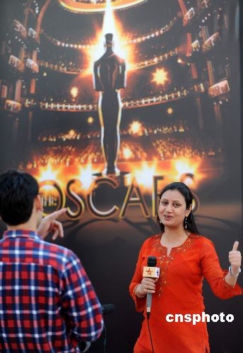 當(dāng)?shù)貢r(shí)間二月二十日,印度星空衛(wèi)視的記者正在好萊塢柯達(dá)劇場前進(jìn)行現(xiàn)場報(bào)道。全球影迷矚目的第八十一屆奧斯卡電影金像獎(jiǎng)?lì)C獎(jiǎng)典禮將于二十二日晚在這里舉行,通往劇場的巨大紅地毯已經(jīng)鋪就,各項(xiàng)準(zhǔn)備工作基本就緒。由印度演員出演的印度題材電影《貧民富翁》被認(rèn)為是今年最佳影片獎(jiǎng)的最大熱門。中新社發(fā) 張煒 攝