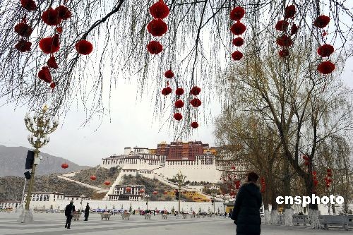 2月23日,西藏自治區(qū)首府拉薩市布達(dá)拉宮廣場(chǎng)張燈結(jié)彩喜迎藏歷新年,高原古城拉薩洋溢著濃郁的節(jié)日氣氛。中新社發(fā) 廖攀 攝