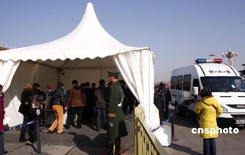 2月27日,全國“兩會”即將召開,北京天安門廣場加強安檢工作。中新社發(fā) 鄭雄增 攝
