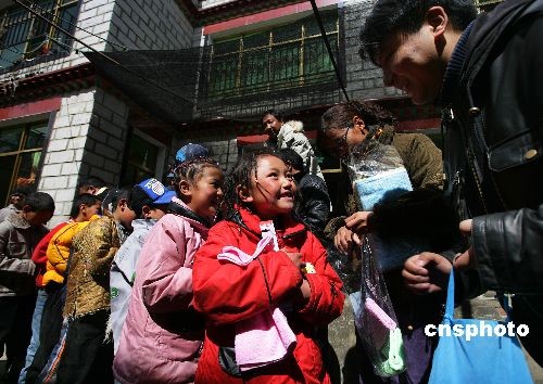2月28日,藏歷大年初四,拉薩市希望角公益組織十幾名青年志愿者來(lái)到位于拉薩城關(guān)區(qū)的曲珍孤兒院,利用休息周六時(shí)間來(lái)看望孩子們,給孩子們帶來(lái)玩具、食物和文具等,并和孩子們做游戲等。曲珍孤兒院成立于2001年11月,由一個(gè)叫尼瑪?shù)牟刈迦碎_(kāi)辦,現(xiàn)有七十多名孩子,經(jīng)費(fèi)由尼瑪個(gè)人和各種公益組織提供。中新社發(fā) 劉震 攝