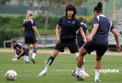 加盟美國(guó)洛杉磯太陽(yáng)隊(duì)的中國(guó)女足隊(duì)員韓端三月二日與隊(duì)友一起參加新賽季開(kāi)賽前的首次正式集訓(xùn)。韓端是中國(guó)國(guó)家女子足球隊(duì)的主力前鋒,曾征戰(zhàn)過(guò)兩屆奧運(yùn)會(huì)和女足世界杯等大賽。韓端加盟的洛杉磯太陽(yáng)隊(duì)擁有一批世界頂級(jí)水平的女足球員,包括世界“足球小姐”巴西前鋒瑪塔。中新社發(fā) 張煒 攝