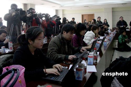 3月4日,因“三聚氰胺”事件而破產(chǎn)的中國(guó)乳業(yè)巨頭石家莊三鹿集團(tuán)股份有限公司掛牌拍賣,北京三元集團(tuán)毫無(wú)懸念地入主三鹿。圖為關(guān)注這一并購(gòu)事件的中外媒體。中新社發(fā) 翟羽佳 攝