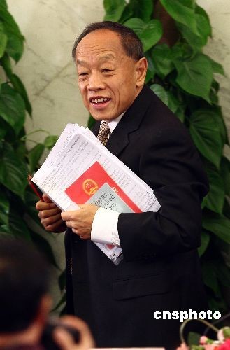 3月4日,十一屆全國(guó)人大二次會(huì)議新聞發(fā)布會(huì)在北京人民大會(huì)堂舉行,大會(huì)發(fā)言人李肇星手拿《聯(lián)合國(guó)憲章》和《中華人民共和國(guó)憲法》出席發(fā)布會(huì),笑對(duì)記者的刁鉆提問。中新社發(fā) 杜洋 攝