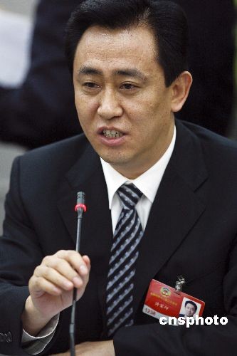 3月4日,全國政協(xié)十一屆二次會(huì)議在北京進(jìn)行分組討論,全國政協(xié)委員、恒大地產(chǎn)主席許家印在分組討論上建議降低房價(jià),讓利于民。中新社發(fā) 盛佳鵬 攝